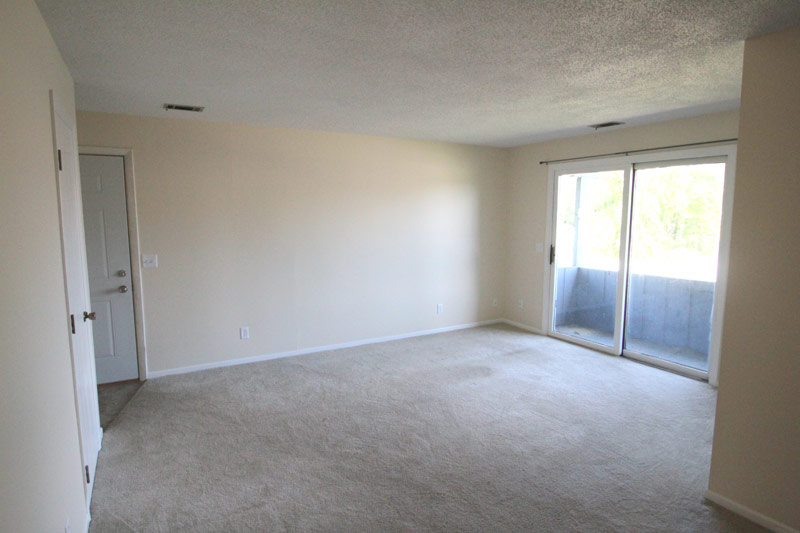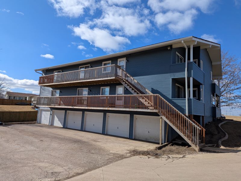 Spacious (over 987 sq ft) upper level apartment located in front left of building. Features a ton of closet space as well as large garage and covered private balcony.  Newer windows and all of the rooms have been recently painted.  Washer/Dryer hookups in unit.  Backs right up to elementary school.   Water/Sewer, Trash, snow removal, and lawn care included. Smaller complex with only 6 units in total.